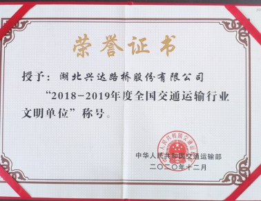 企業(yè)資質/ ENTERPRISE QUALIFICATION 交通動輸企業(yè)安全生產標準化建設二級達標企業(yè) 2013年度優(yōu)秀勞務班組 中國施工企業(yè)管理協(xié)會團體會員 2017-2019年度湖北省文明單位 2018-2019年度全國交通運輸行業(yè)文明單位 2019年度咸寧市建筑行業(yè)綜合實力十強 <123456>