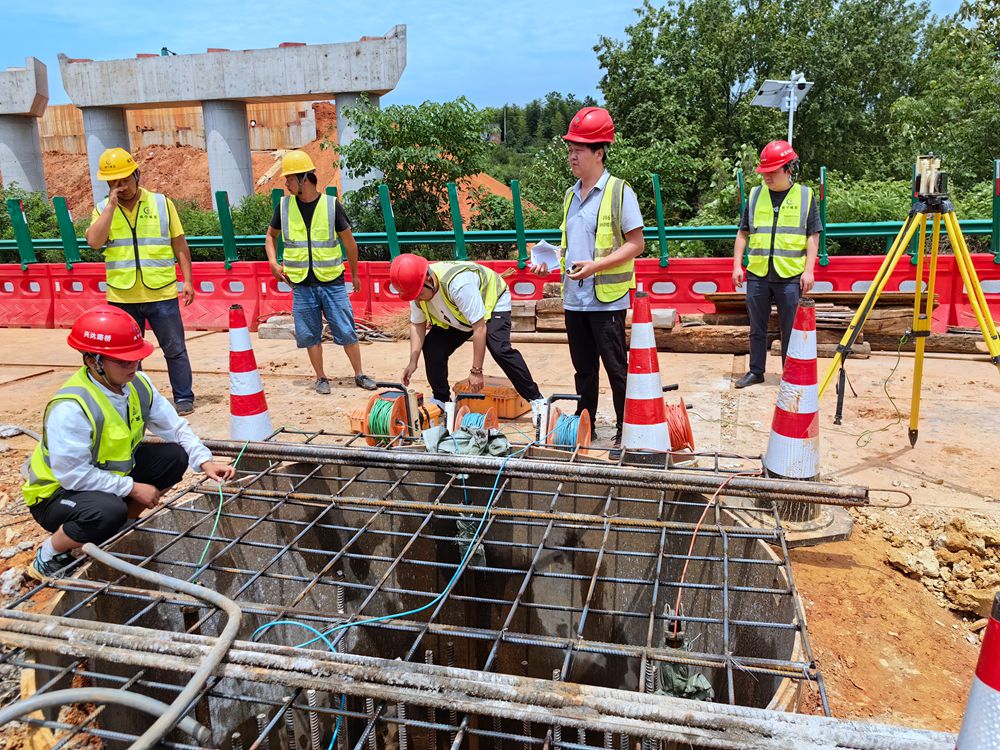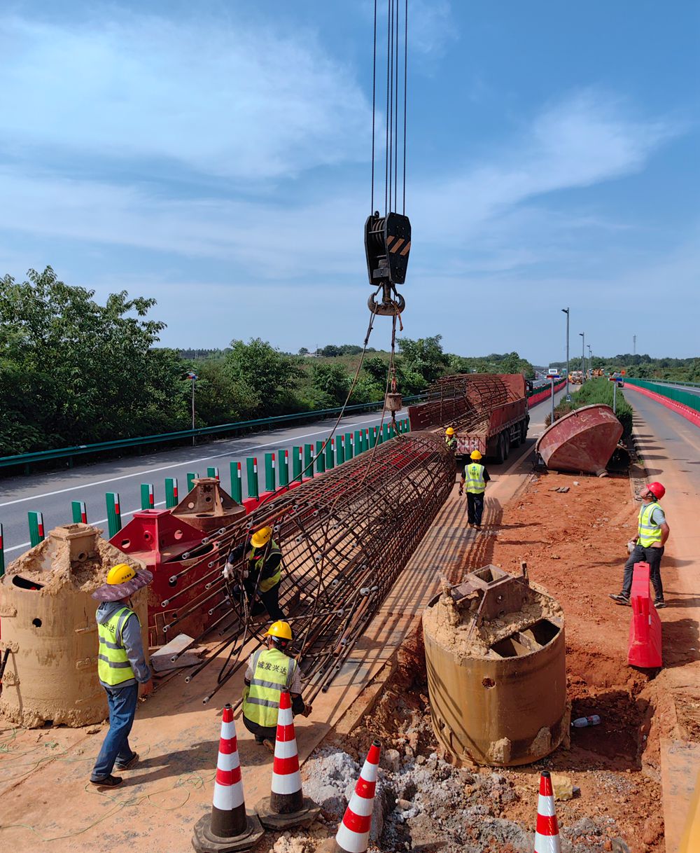 S359武深高速分離式立交是整個S359嘉魚縣綠嶺至朱砂段一級公路改建項目施工難度最大的一部分,因為該段新建道路與已經(jīng)通車運行的武深高速相交,每日往來車流量達(dá)到三萬輛左右,需要在不影響高速車輛正常通行的情況下完成施工任務(wù)。面對復(fù)雜的施工環(huán)境,項目的技術(shù)骨干對施工方案進(jìn)行科學(xué)論證和不斷完善,于5月9日正式開工。